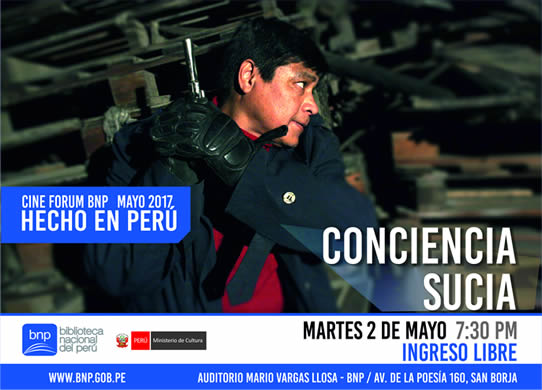 Continuando con su exitoso ciclo de cine nacional, la Biblioteca Nacional del Perú (BNP) presentará el martes 2 de mayo, a las 7:30 p.m., la cinta CONCIENCIA SUCIA (2016), producción independiente que tiene a las peleas de artes marciales como su principal carta de presentación.