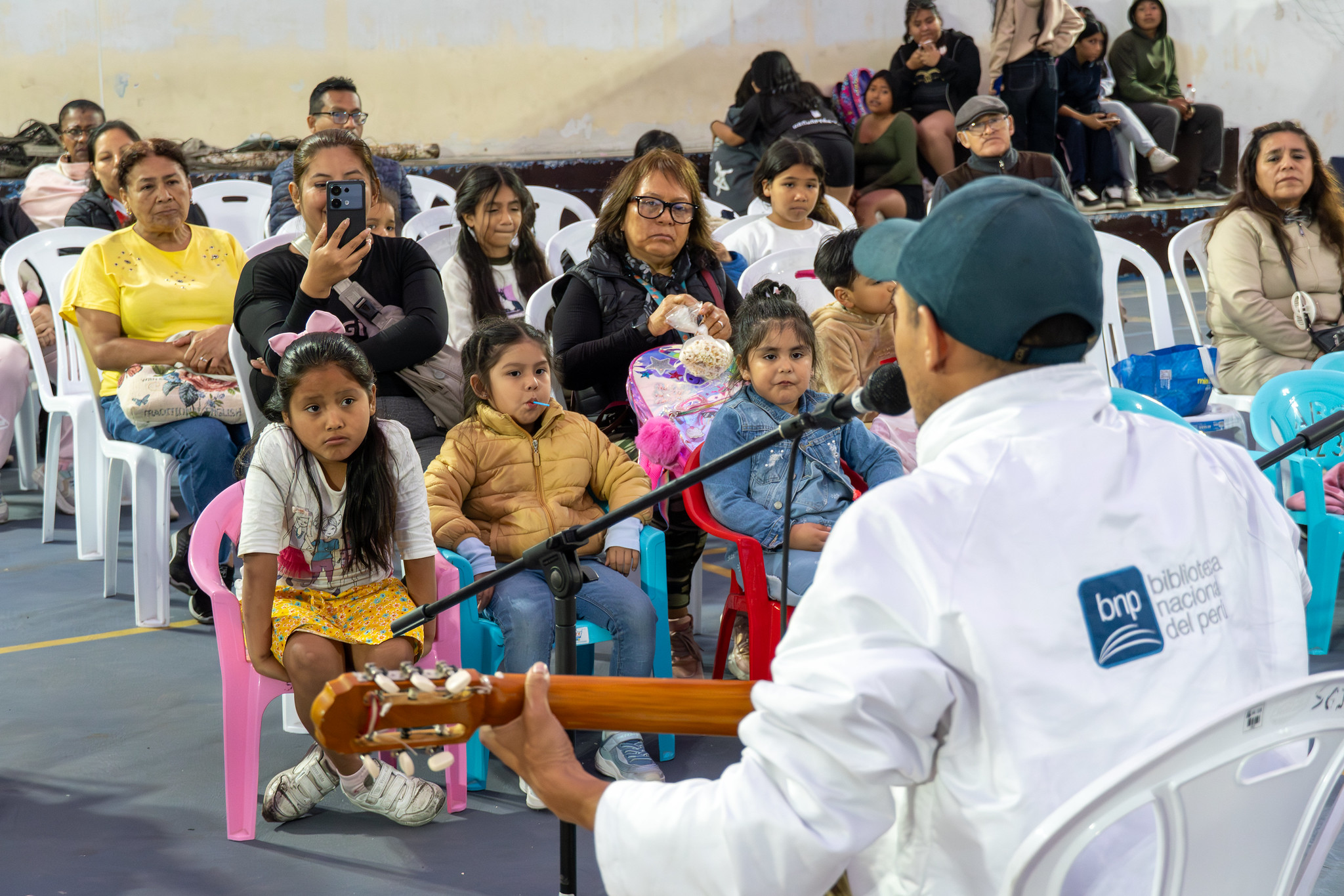 El encuentro comunitario también incluyó espacios de arte y exploración literaria, como el “Retablo Lector”, un ambiente de lectura libre que acercó a los asistentes a las colecciones de la biblioteca, y una mediación musicalizada del libro Mariposas azules editado por la BNP.