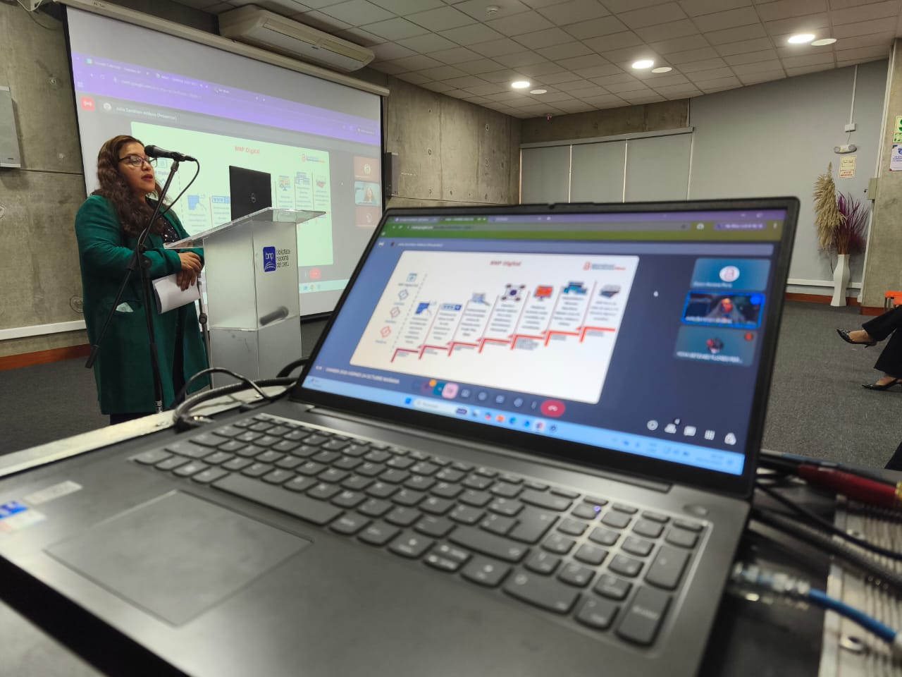 - “La BNP Digital en el ecosistema del acceso abierto peruano”, a cargo de Silvana Aquino, coordinadora de la Unidad Funcional de Acceso e Innovación Digital.