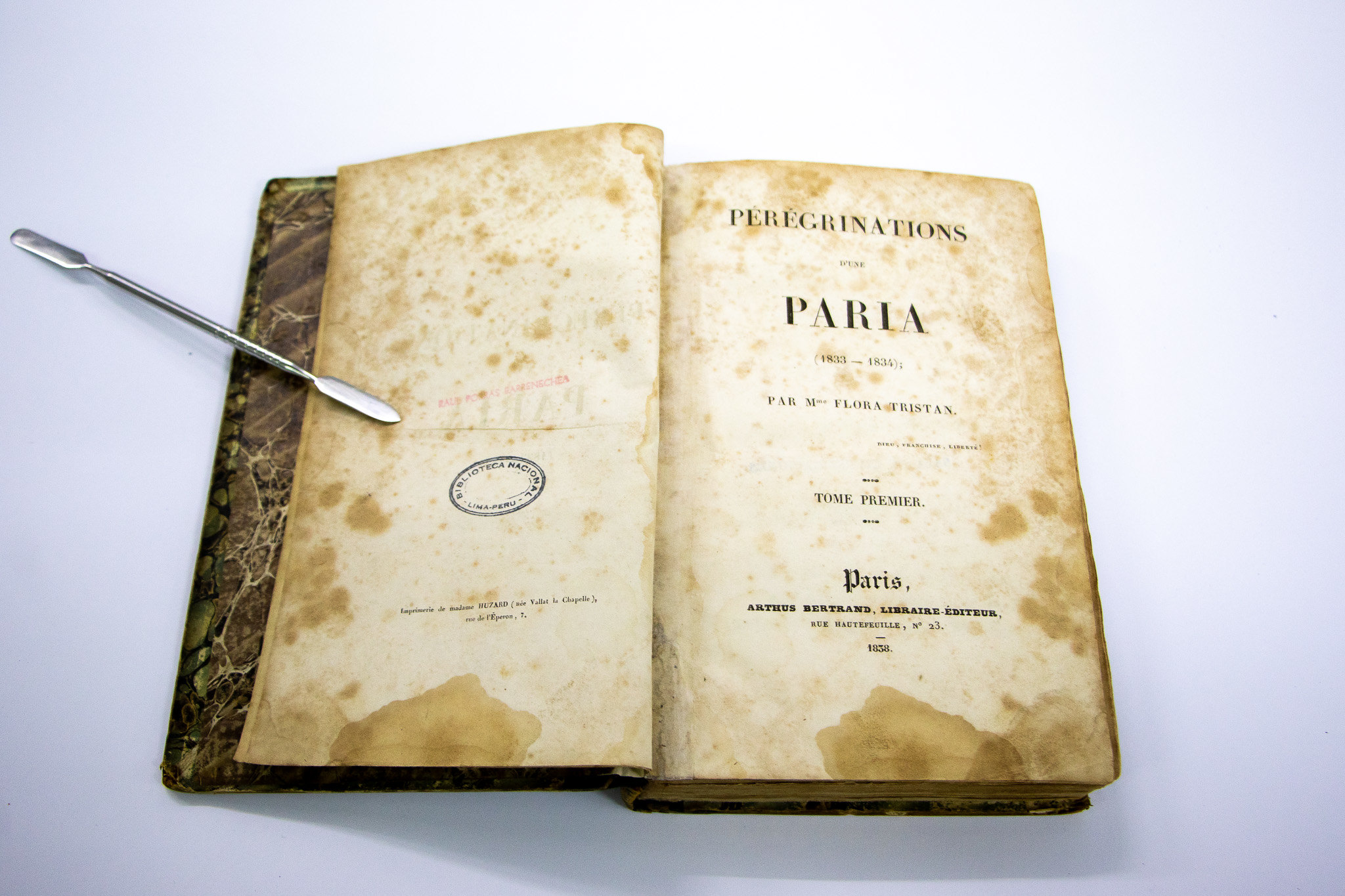Como parte de su invaluable legado, dos tomos de la primera edición de “Pérégrinations d’une paria” (1803-1844) fueron declarados Patrimonio Cultural de la Nación por el Ministerio de Cultura, a través del Viceministerio de Patrimonio Cultural e Industrias Culturales, tras una solicitud de la Biblioteca Nacional del Perú.