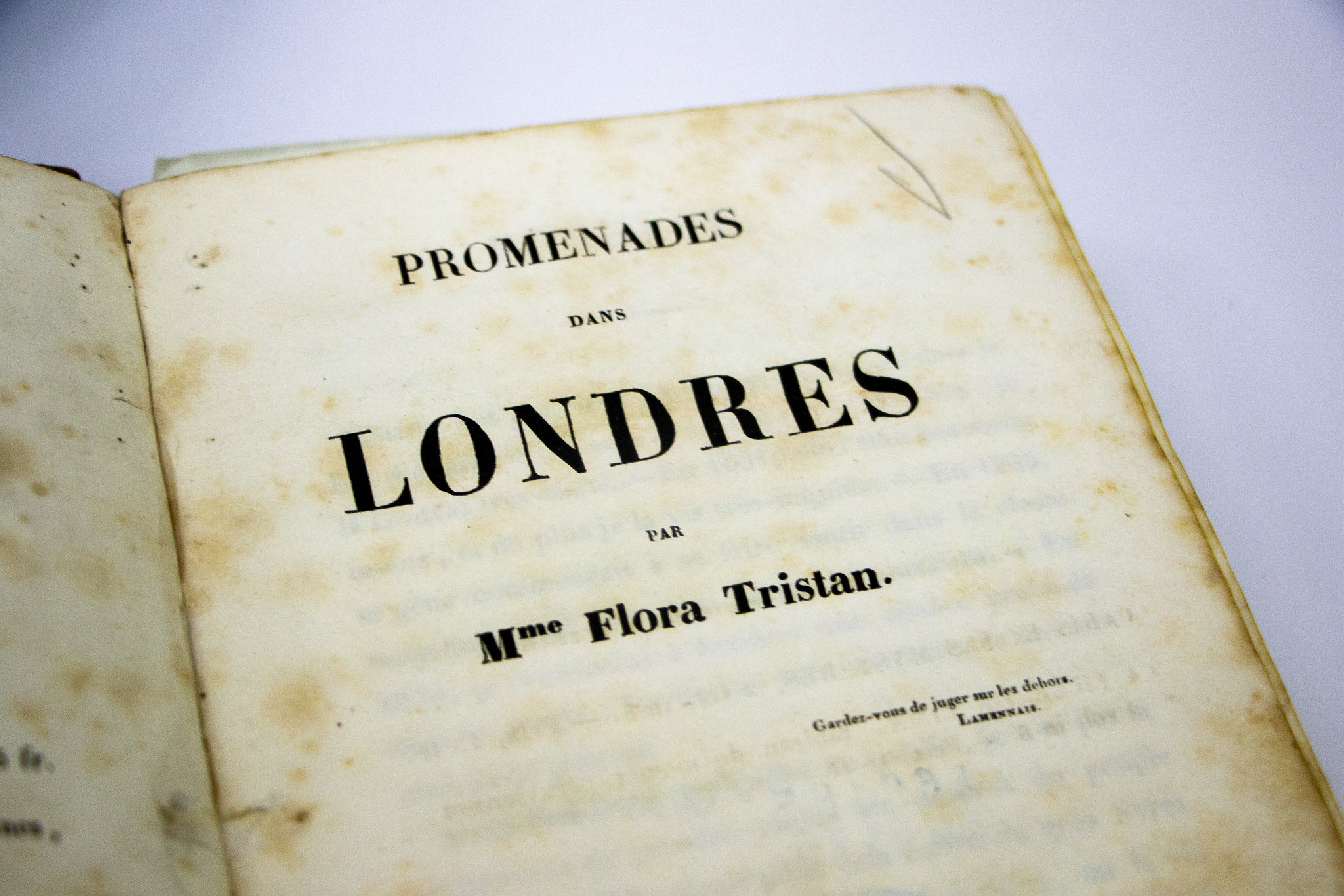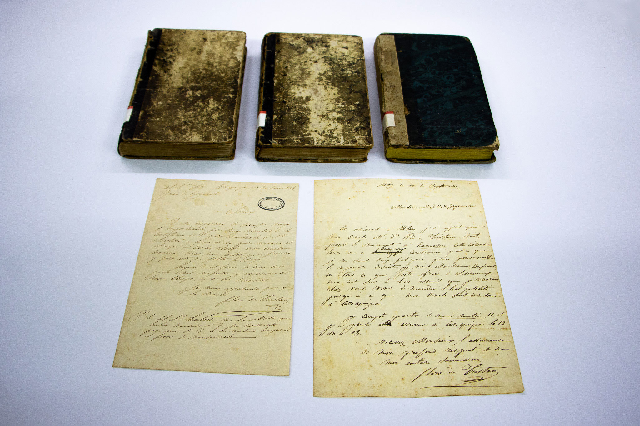 Reconocida como una de las primeras defensoras de los derechos de las mujeres, Flora Tristán dejó un legado intelectual de gran valor que hoy es preservado por la BNP. En su Repositorio del Fondo Antiguo se resguardan primeras ediciones de sus obras más emblemáticas, entre ellas “Pérégrinations d’une paria” (París, 1838, en dos tomos) y “Promenades dans Londres” (París, 1840), además de valiosa correspondencia dirigida a Juan Manuel Goyeneche en los años 1833 y 1834.