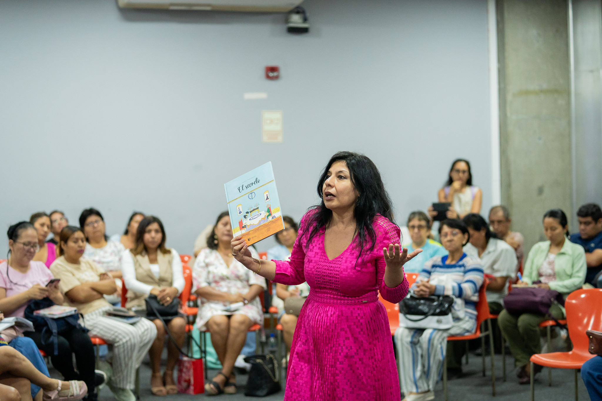 La actividad estuvo dirigida a bibliotecarios, docentes, mediadores de lectura y profesionales del libro, así como a operadores del Sistema Nacional de Bibliotecas (SNB), con el objetivo de fortalecer sus competencias en el uso del álbum ilustrado como herramienta de mediación lectora y educativa.