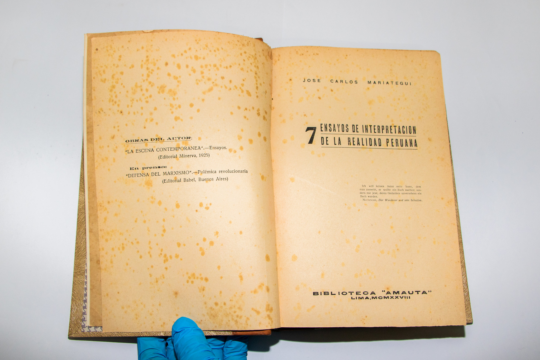 Cabe indicar que el ejemplar en mención destaca por ser una primera edición, que fue la única publicada en vida por Mariátegui. Además de escribir la obra, se encargó de su edición e impresión en la Imprenta y Editorial Minerva, fundada por él mismo y su hermano Julio César en 1925, bajo el sello de la Sociedad Editora Amauta (fundada en 1928).