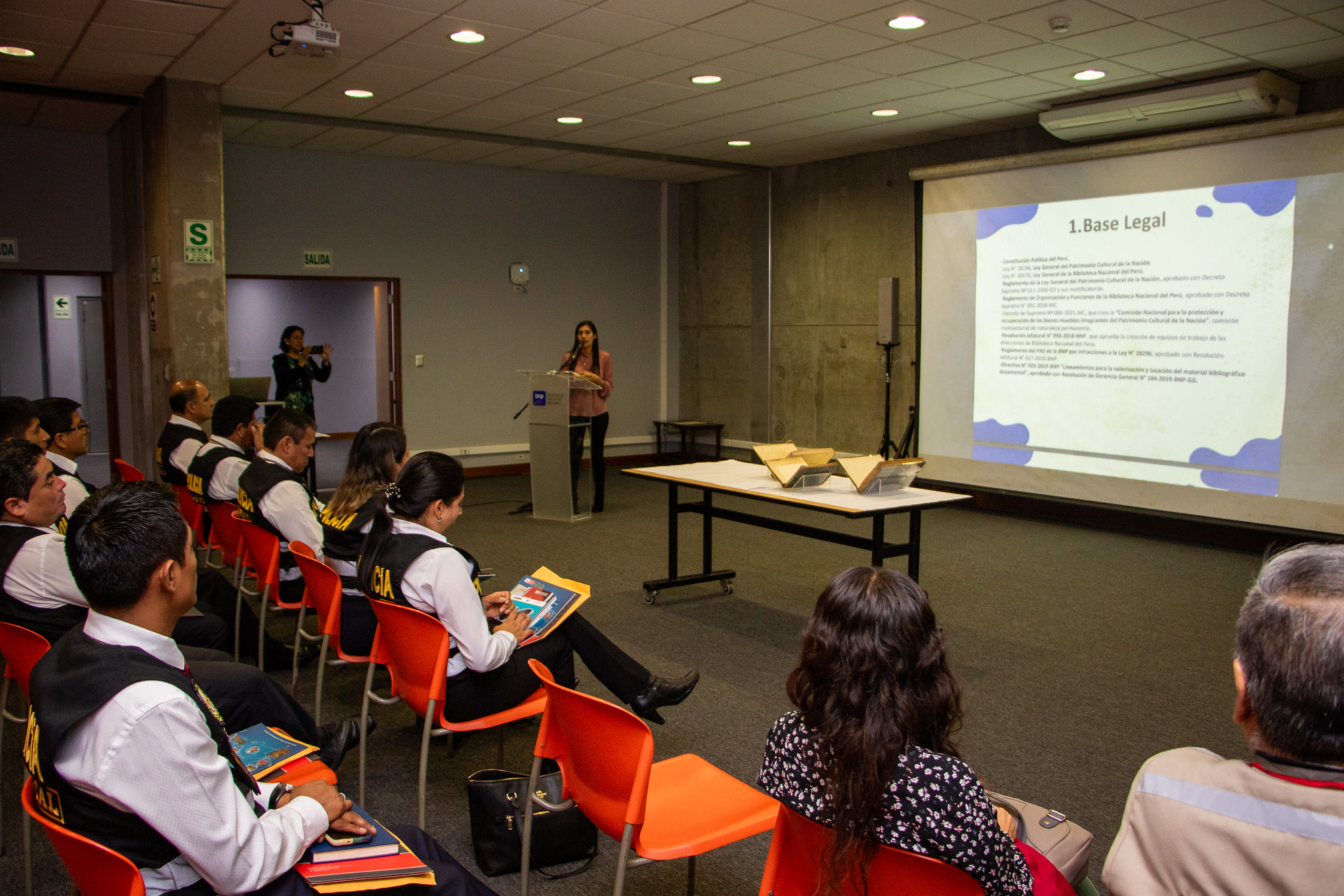 Especialistas de la Biblioteca Nacional del Perú (BNP), entidad adscrita al Ministerio de Cultura (Mincul), dictaron charlas de capacitación a agentes de la Policía Nacional, que laboran en la Dirección de la Policía Fiscal, para reforzar la tarea que cumplen en materia de la lucha contra el tráfico ilícito de bienes culturales, muebles de tipo archivístico y bibliográfico.