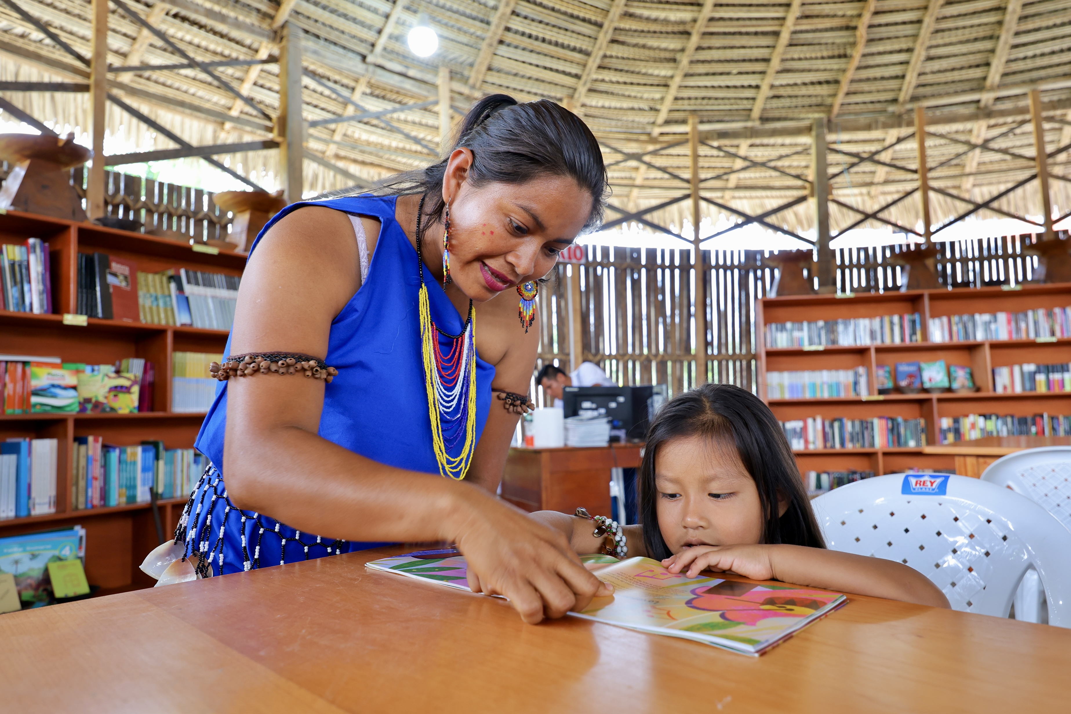 Esta importante iniciativa beneficiará a cerca de 20 mil habitantes, entre ellos comunidades que forman parte de la etnia Wampis y Awjaun, quienes ahora contarán con un espacio adecuado para el aprendizaje, el acceso al conocimiento y el desarrollo cultural de sus comunidades. La biblioteca diseñada en forma de maloca de madera circular, respetando el entorno y la identidad intercultural de la zona.