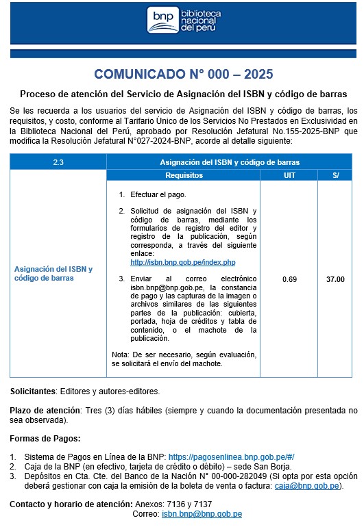 La Biblioteca Nacional del Perú informa lo siguiente sobre su servicio de trámite documentario: