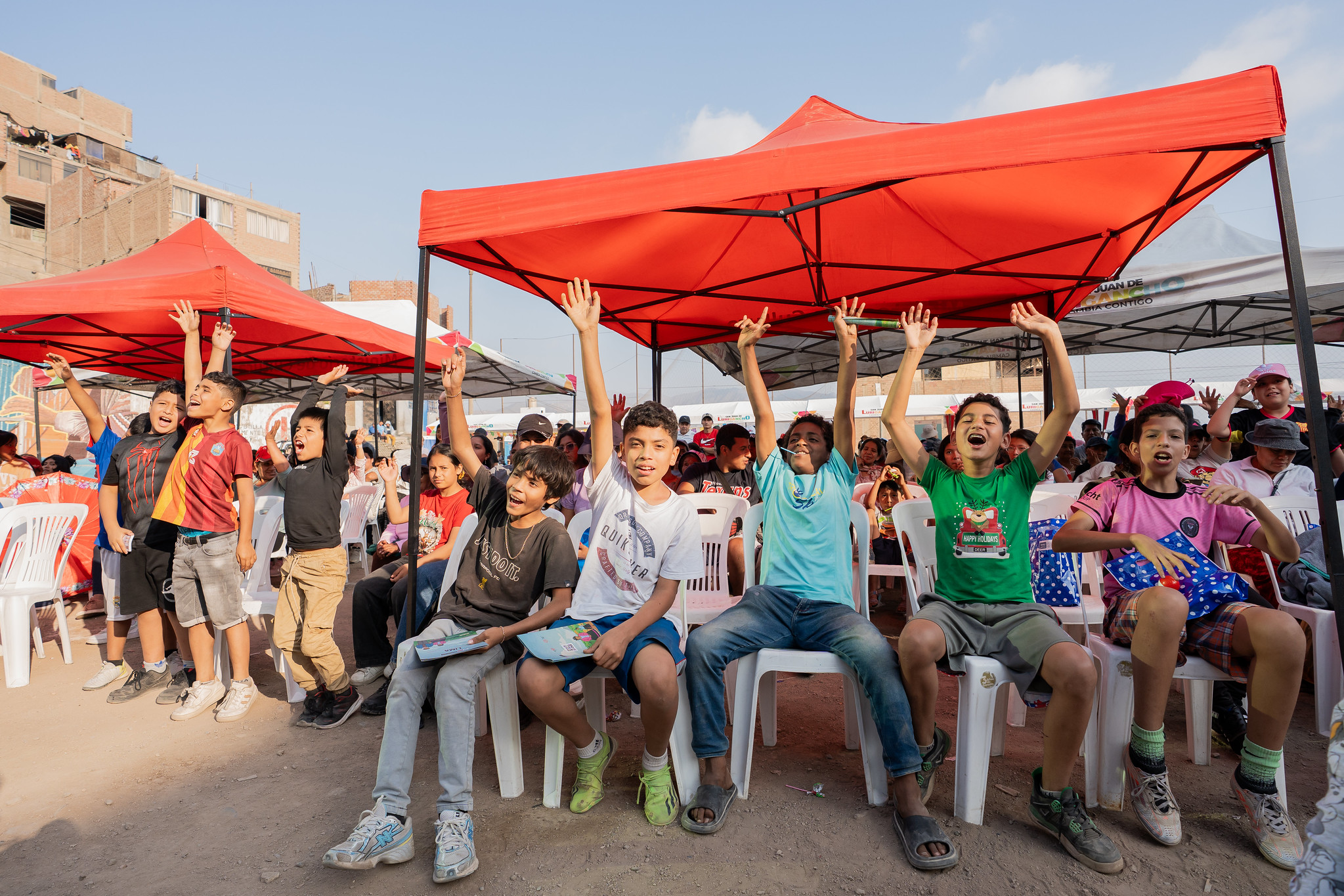 La explanada “La Bombonera”, ubicada en el asentamiento humano Las Terrazas de Canto Grande, se convirtió en un espacio de encuentro comunitario donde familias, niñas, niños y jóvenes disfrutaron de presentaciones artísticas como danzas, música, circo, BiblioCine, juegos recreativos y un bingo familiar navideño, que tuvo como premios bicicletas y canastas.