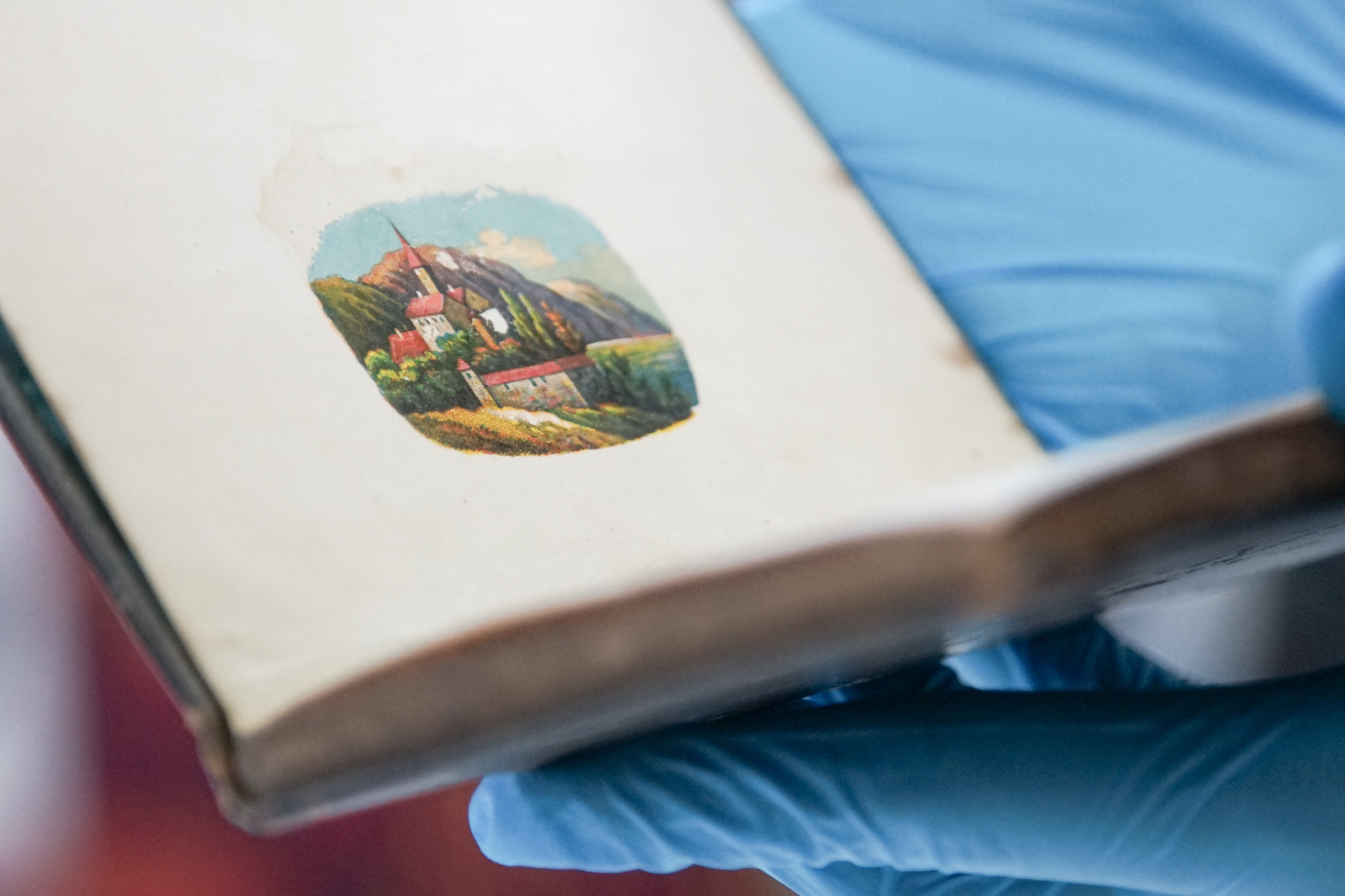 El ejemplar recuperado contiene seis unidades bibliográficas impresas entre los años 1849 y 1856. Se trata de una publicación de temática religiosa cuyo primer título es “Trisagio Seráfico para venerar a la muy augusta y santa Trinidad”. El volumen presenta una encuadernación en pasta de cuero realizada en años posteriores a su impresión; en la portada figura el año “1860” y una dedicatoria que dice: “A Ana Grau. Su padre J. Manuel Grau”, inscripción que corresponde a la hermana y al padre de Miguel Grau, conocido como el “Caballero de los Mares”.
