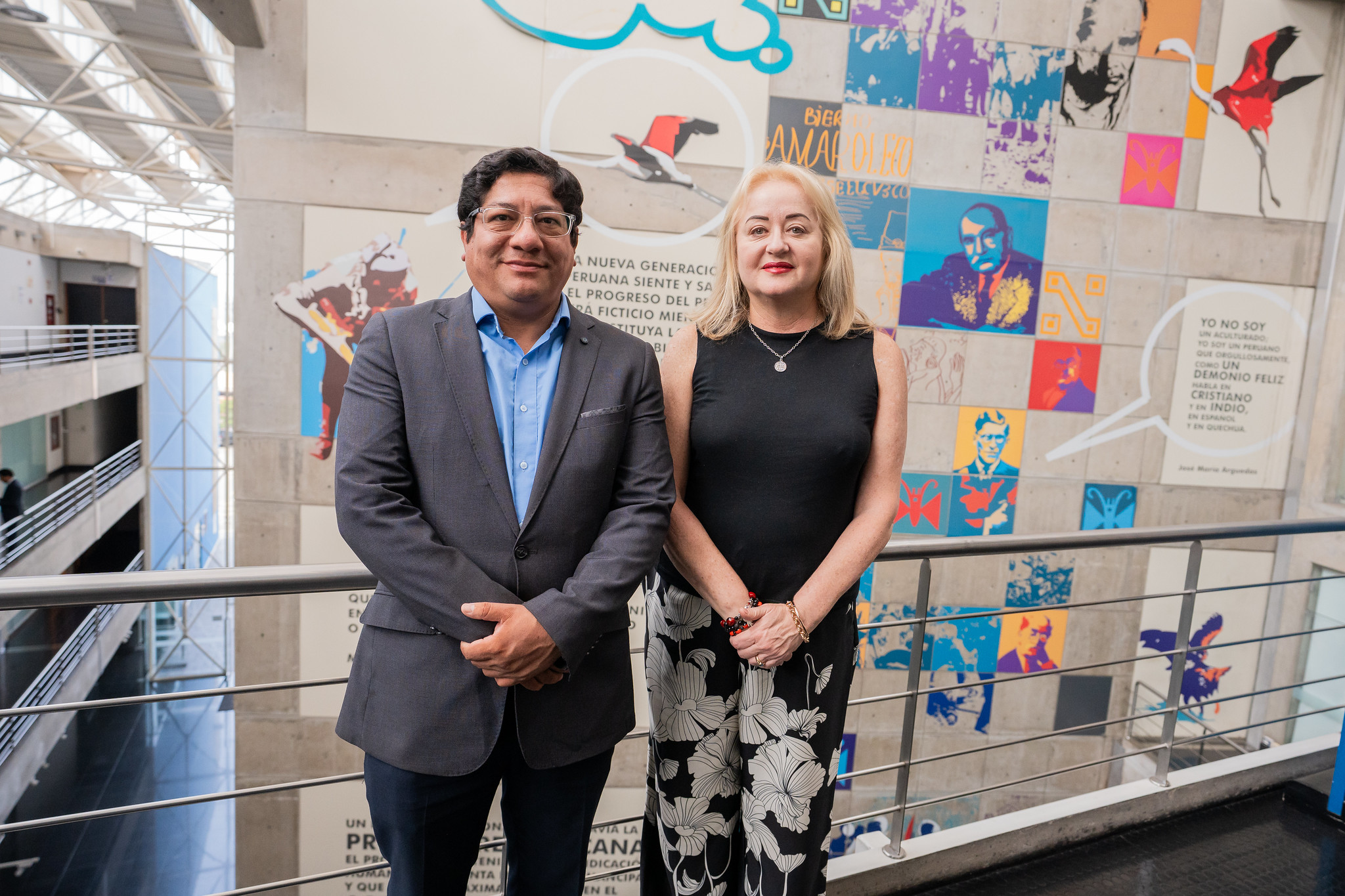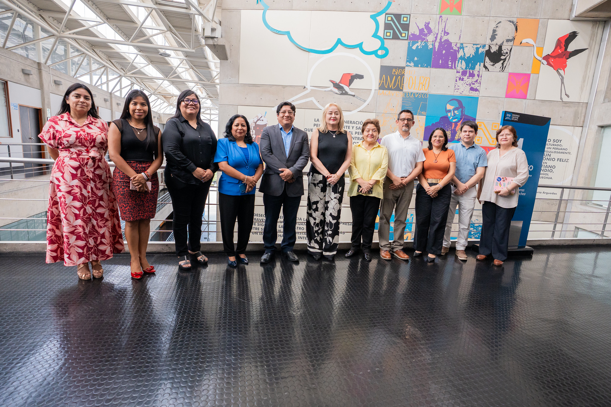 Durante la visita, la ministra conoció el Teatro Auditorio Mario Vargas Llosa, espacio destinado a actividades culturales y académicas que promueven el diálogo entre la ciudadanía y el conocimiento. Asimismo, recorrió el hall principal de la institución, donde se exhiben los retablos lectores, piezas artísticas que celebran el poder transformador de la lectura.