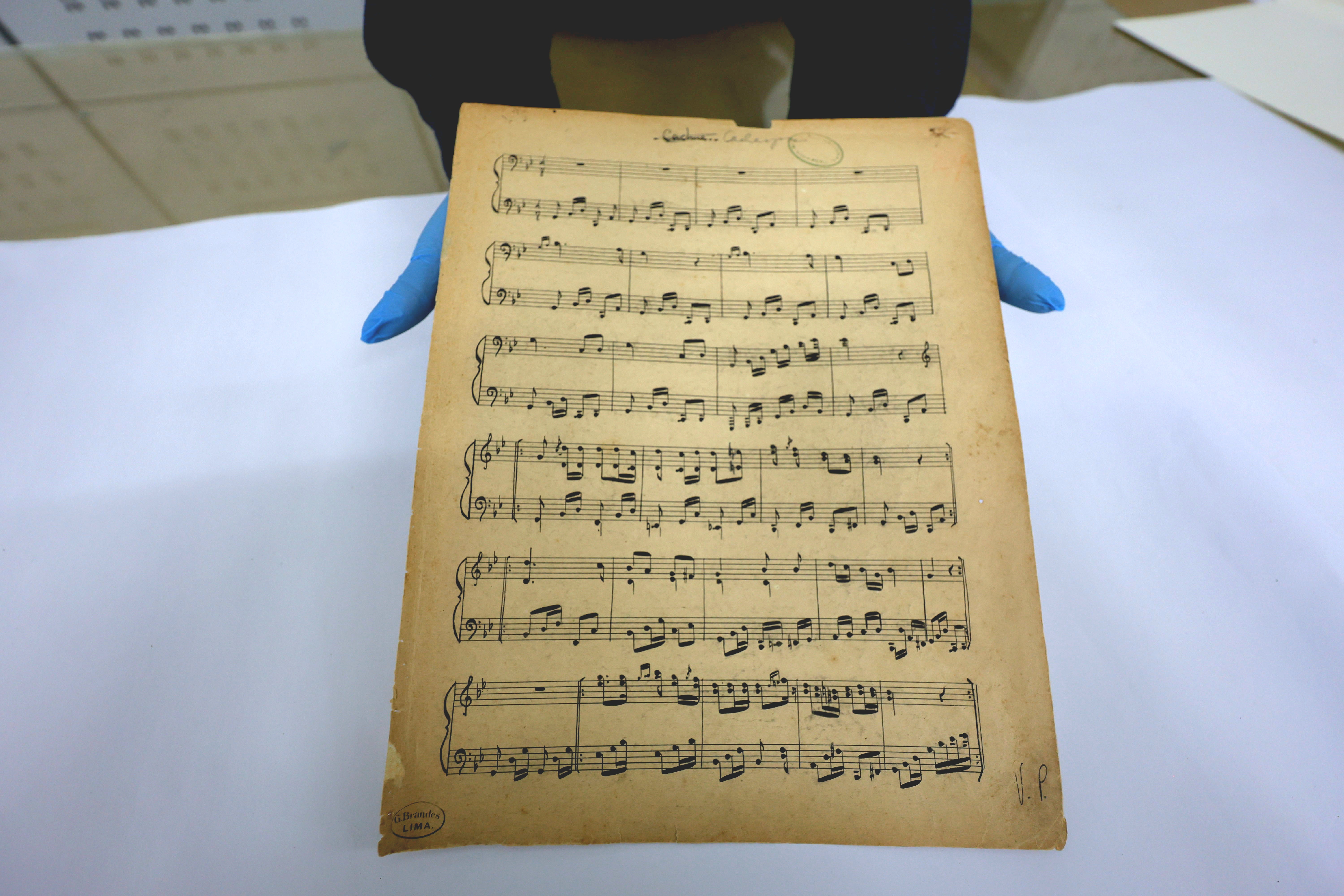 - Estas partituras destacan porque contienen la autógrafa manuscrita del compositor huanuqueño junto al título de la pieza musical, registrada en la mayoría de sus obras, así como su rúbrica característica.